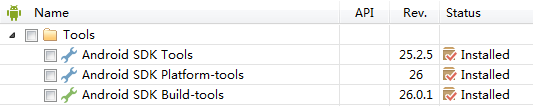 ②、API的任意选择一个,考虑向下兼容原则,可以下载最新的API。(最新的27,最好26的也下载,否则会报错,如下图所示)