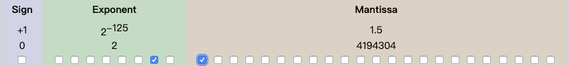 所以最后表示的是1.100000....向左移动125位,即0.000....00(小数点后有124个0)110000...,即2^-125+2^-126 约等于3.526483E-38