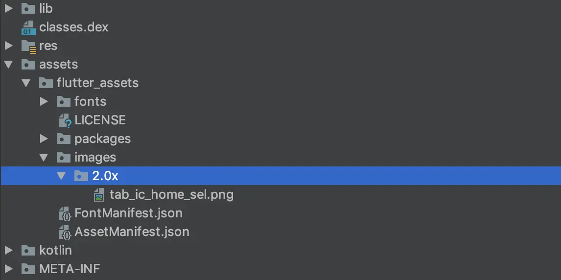 相比起Android系统的资源管理,flutter对资源的管理实在是简单得太多了,flutter的资源没有经过编译的任何处理,完全是以源文件的形式暴露出来,获取资源就是以文件的读取方式来进行,返回给到flutter的是资源在内存中的buffer内容,资源是以目录名+文件名来标识,如下: