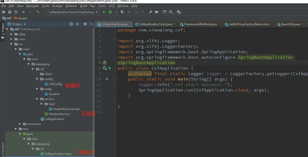 private Logger logger = LoggerFactory.getLogger(CxfApplication.class);