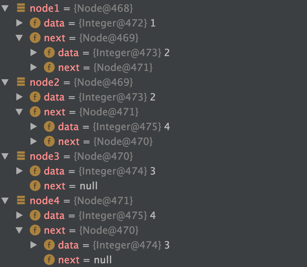 //这样的链表就和数组 int[] a=new int[]{1,2,3}差不多,由于node3的后继不存在,所以node3指向null