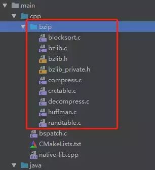 bsdiff开源工具源码为.c文件,即Android端需要配置JNI(以下是基于CMake)。
