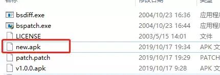 保持在当前目录,命令行输入bspatch v1.0.0.apk new.apk patch.patch