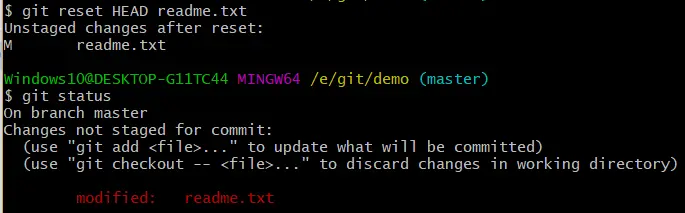 git reset HEAD readme.txt