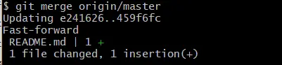 可以看到信息提示远程仓库的 master 有更新,这时再运行 git merge origin/master