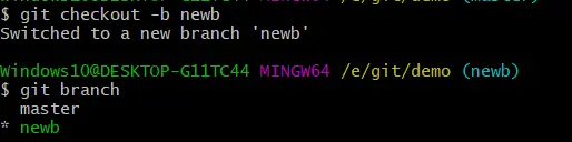 git checkout -b newb