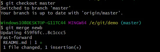 使用 git merge 命令将任何分支合并到当前分支中去