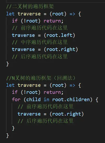 到这里,我们只需要记住回溯法就是N叉树的遍历即可,这个N代表当前可做选择(choices)的总数,同时,在前序遍历做出选择,choose 过程;然后递归,在后序遍历删除选择,unchoose过程 (也叫恢复现场),伪代码模板如下