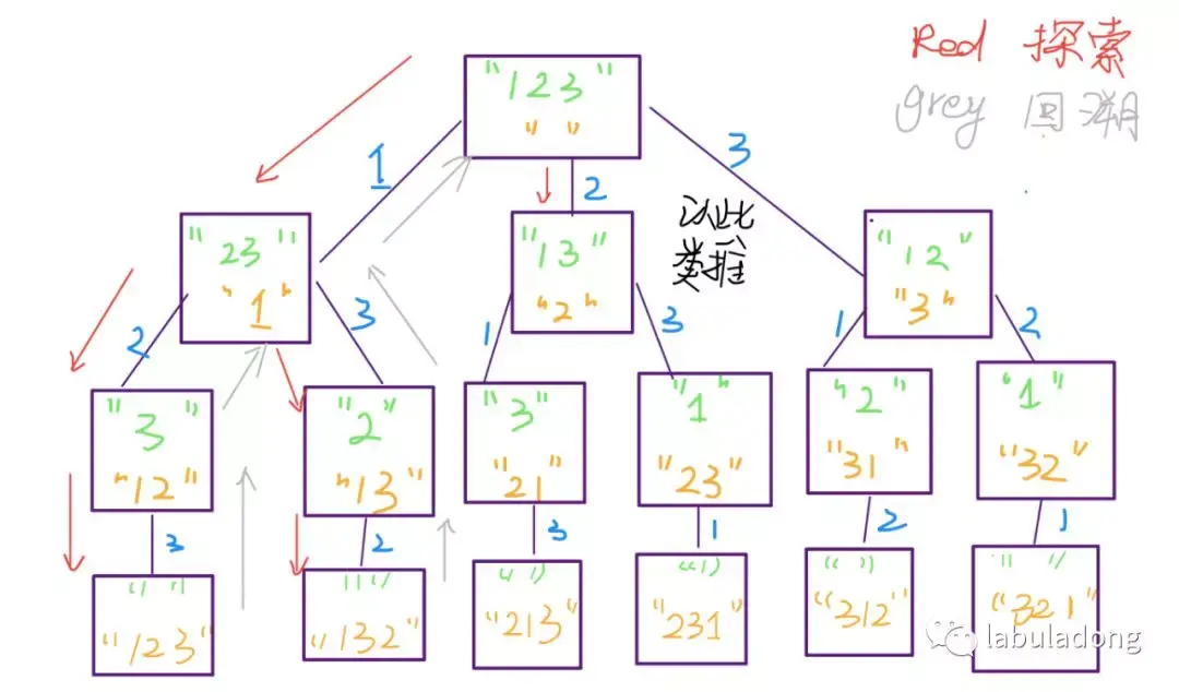 这个问题我们高中就做过,我们的思路是,先把第一个数固定为 1,然后全排列 2,3;再把第一个数固定为 2,全排列 1,3;再把第一个数固定为 3,全排列 1,2 。