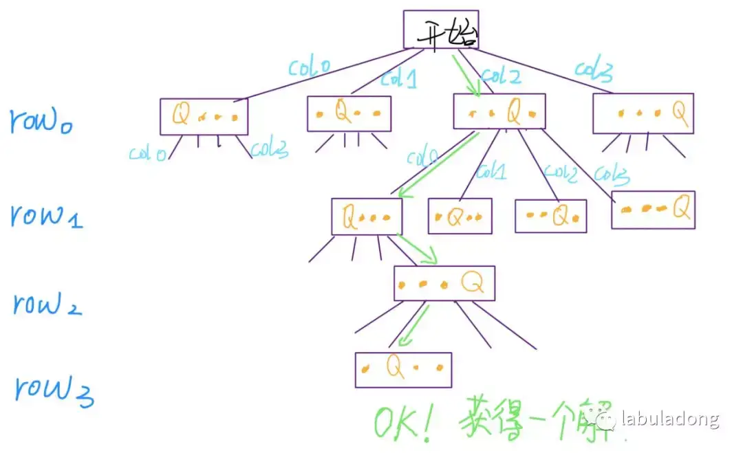 「决策路径」:就是棋盘 board,每一步决策即 board 的每一行。row 变量记录着当前决策路径走到哪一步了