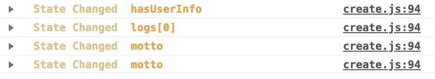 全局更新开发默认是关闭的,调试开关默认打开,可以在store.data 的所有变动都会出现在开发者工具 log 面板,如下图所示:
