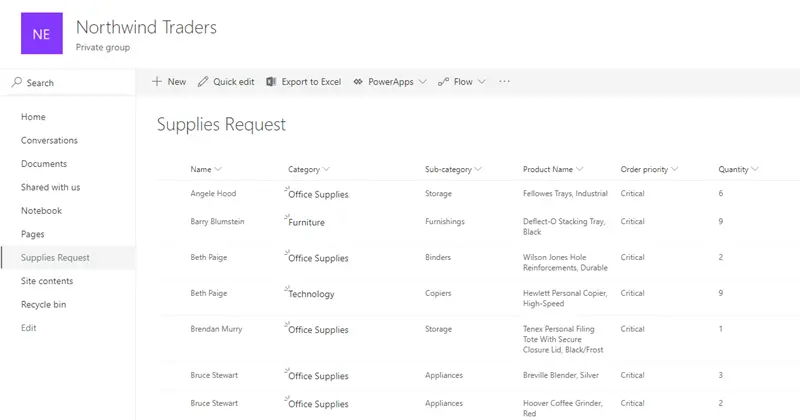 假设公司中的各个员工都可以访问SharePoint列表,以报告办公室中供应不足的耗材:
