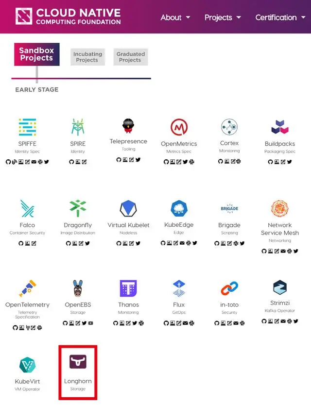 CNCF沙箱是早期阶段项目的孵化器,当项目满足沙箱阶段的要求及孵化阶段的附加要求,即可进入孵化阶段。要从CNCF毕业则需满足更严格的要求。除了此次将Longhorn捐献给CNCF之外,其实Rancher自成立以来便一直与CNCF保持着密切的联系,是云原生生态系统中极重要的参与者和贡献者。