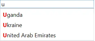 多次出现:当“建议模式”设置为“包含”时,这会突出显示任何列表项中存在的匹配字符。