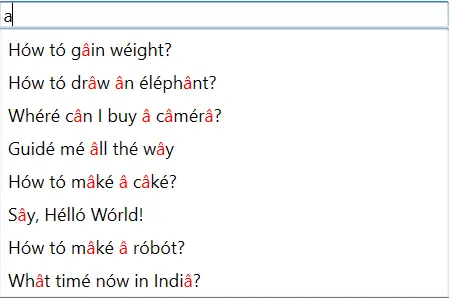 用包含变音符号的字母填充语言中的项,并用en-US键盘中的英文字符搜索它们。
