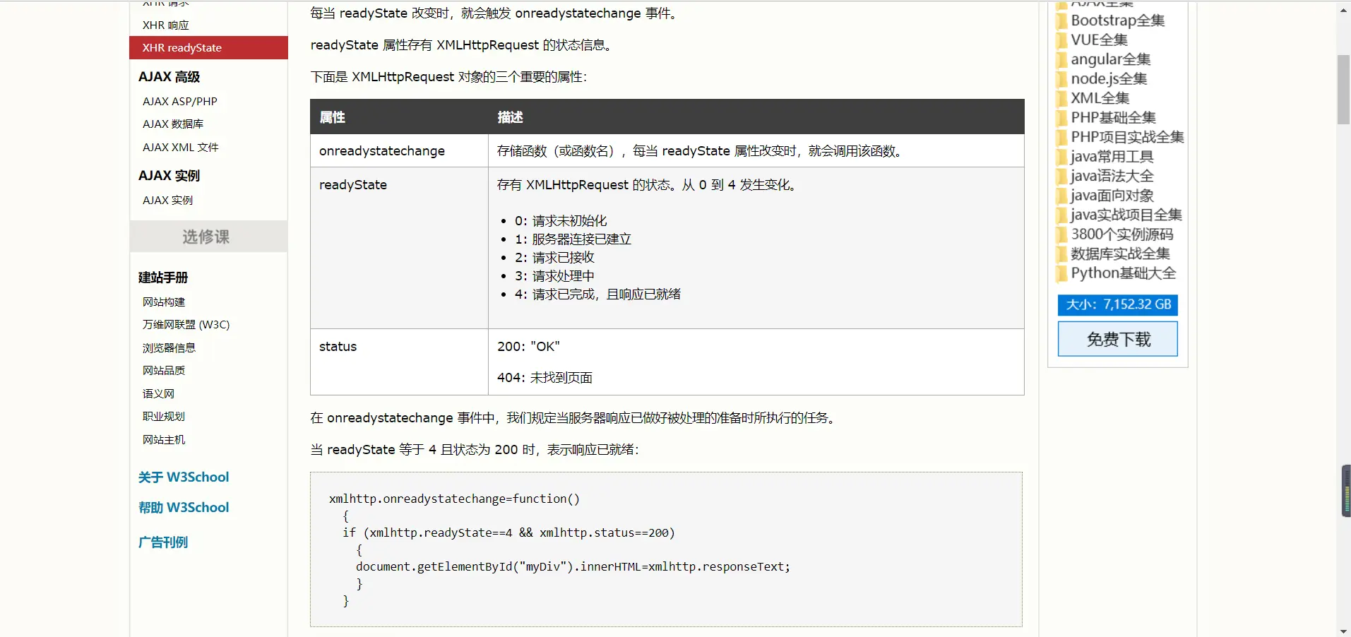 * onreadystatechange 存储函数(或函数名),每当 readyState 属性改变时,就会调用该函数。