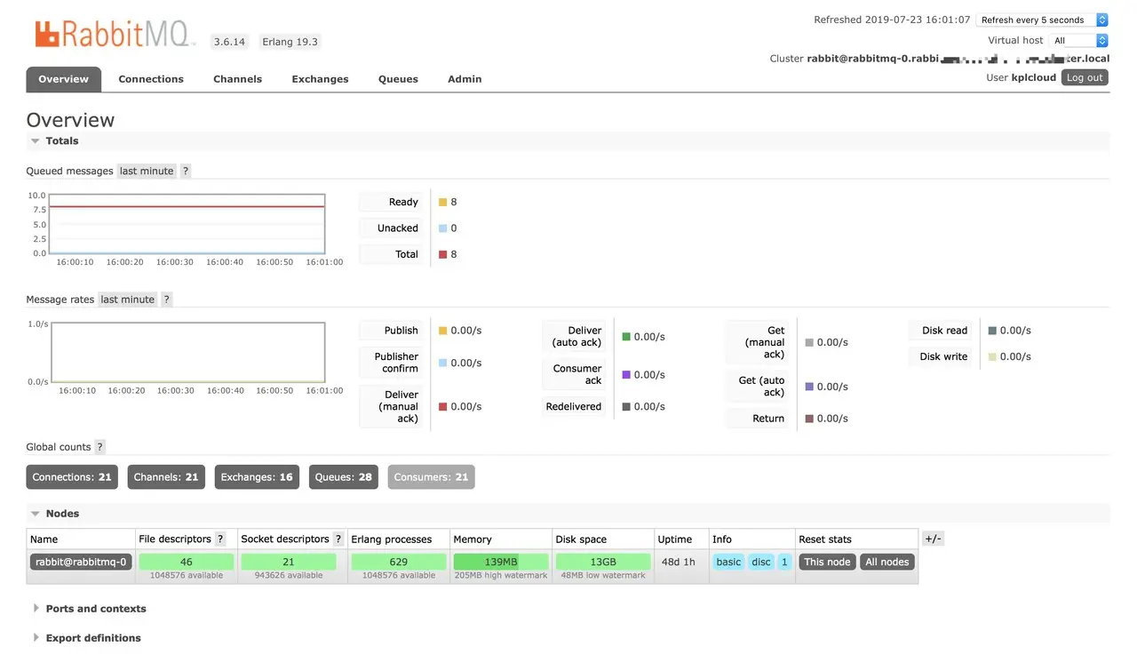 为了方便给大家演示,rabbitmq也使用的docker版本部署在kubernetes集群上,真实环境请使用独立的rabbitmq服务器