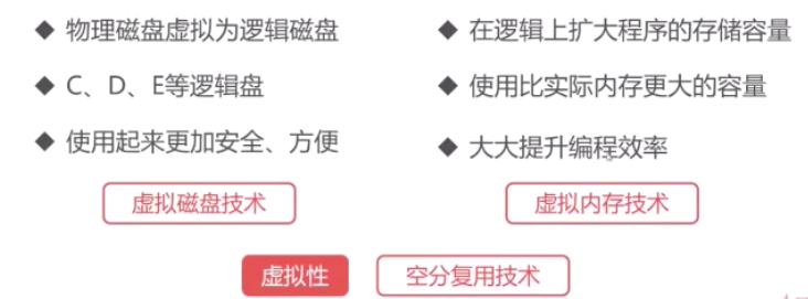 - 虚拟性表现为把一个物理实体转变为若干个逻辑实体