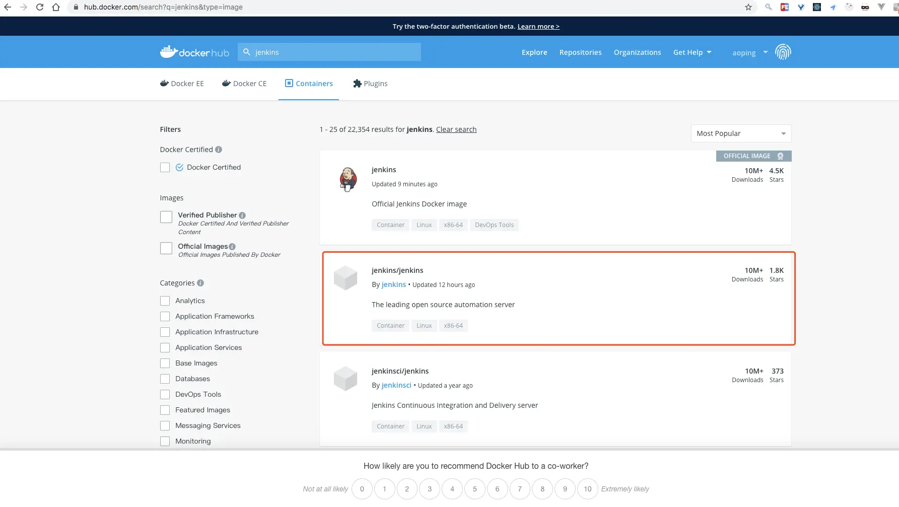 我们搜索一下要安装的jenkins镜像