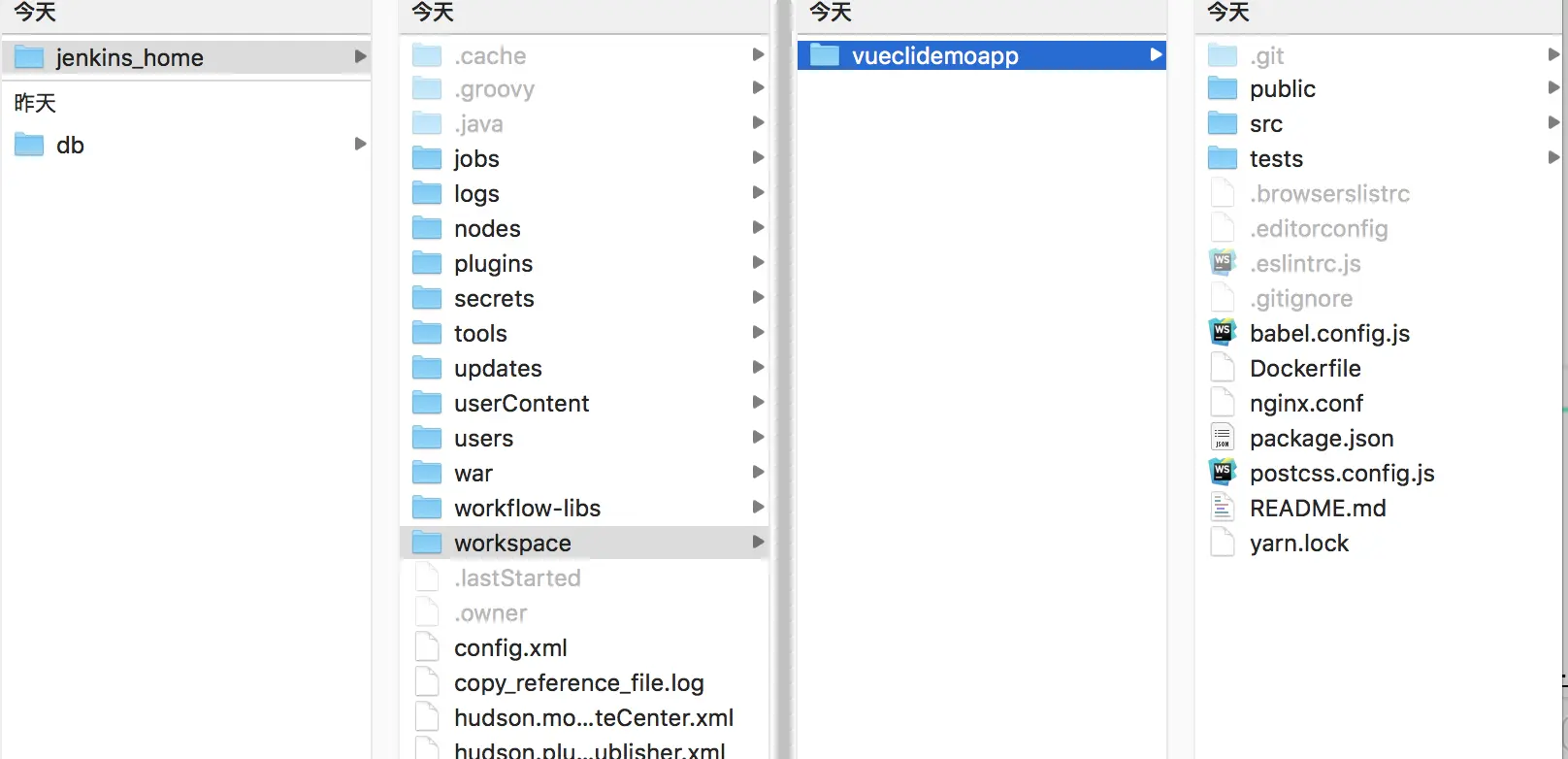 同时我们可以看到/Users/isaacho/Documents/application/docker/jenkins_home目录下生成了很多文件