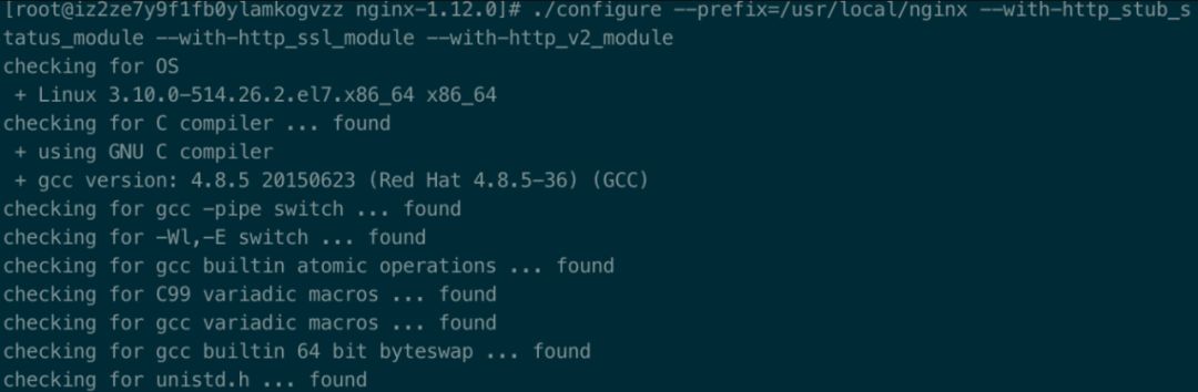 1./configure --prefix=/usr/local/nginx --with-http_stub_status_module --with-http_ssl_module --with-http_v2_module