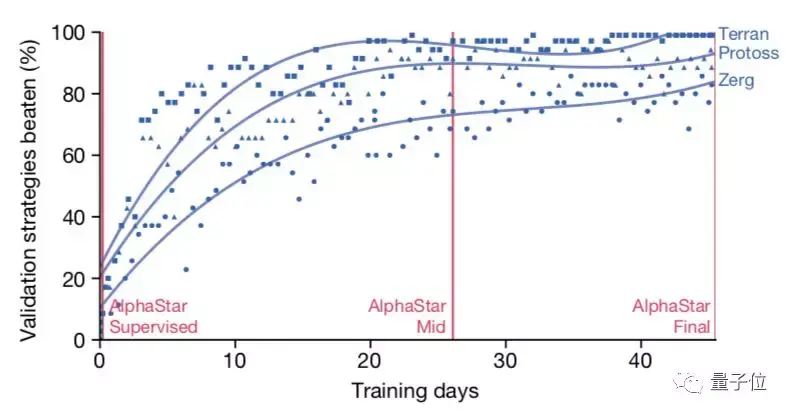 同时,DeepMind也在Nature上完整披露了AlphaStar的当前战力和全套技术: