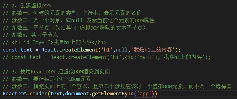 使用React创建的虚拟DOM元素,都会被渲染到这个指定的容器中 <div id="app"></div>