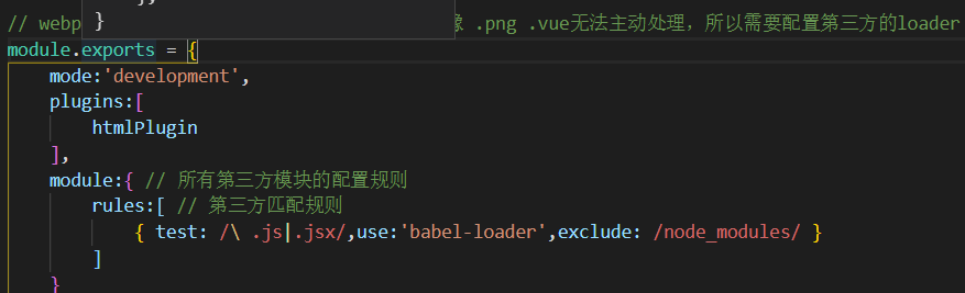 npm i babel-preset-env babel-preset-stage-0 -D - 在webpack.config.js文件中添加第三方匹配规则