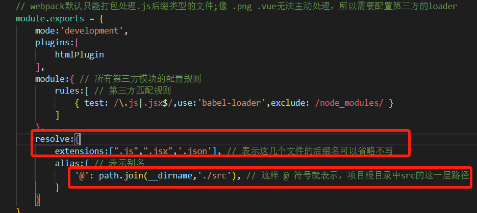 .jsx后缀,如果想要省略,则需要事先在webpack.config.js文件中去配置