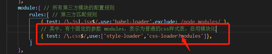 { test: /\.css$/,use:['style-loader','css-loader?modules&localIdentName=[path][name]-[local]-[hash:5]']},