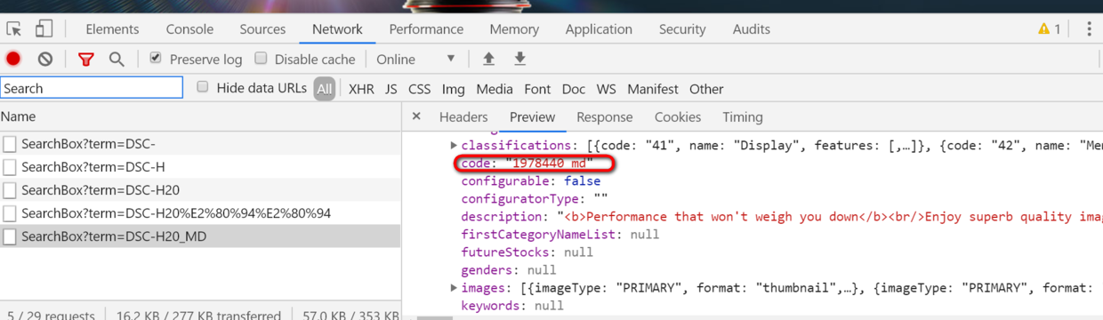 http url如下:https:///electronics/en/search/autocomplete/SearchBox?term=DSC-H20_MD