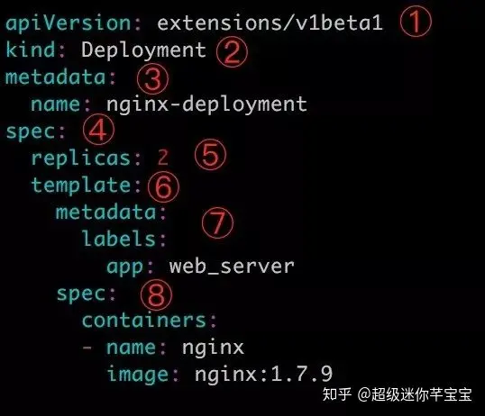 上图中 deployment.yml 分为 8 个部分,分别如下: