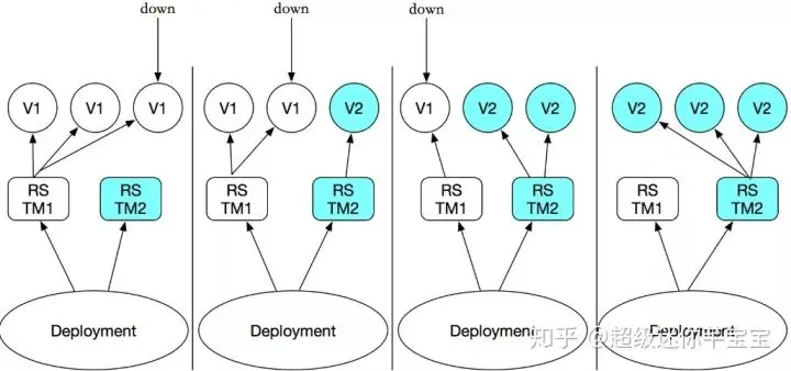升级策略我们选择 RollingUpdate 的方式,即在升级过程中滚动式地逐步新建新版本的 Pod,待新建 Pod 正常启动后逐步 kill 掉老版本的 Pod,最终全部新版本的 Pod 替换为旧版本的 Pod。