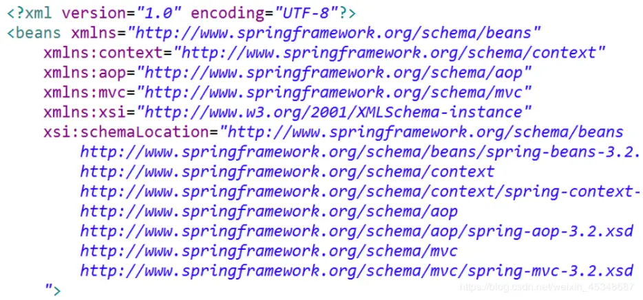 创建这个文件,这个文件本身就是Spring的配置文件,所以导入Spring相关的约束信息,包括beans、context、mvc