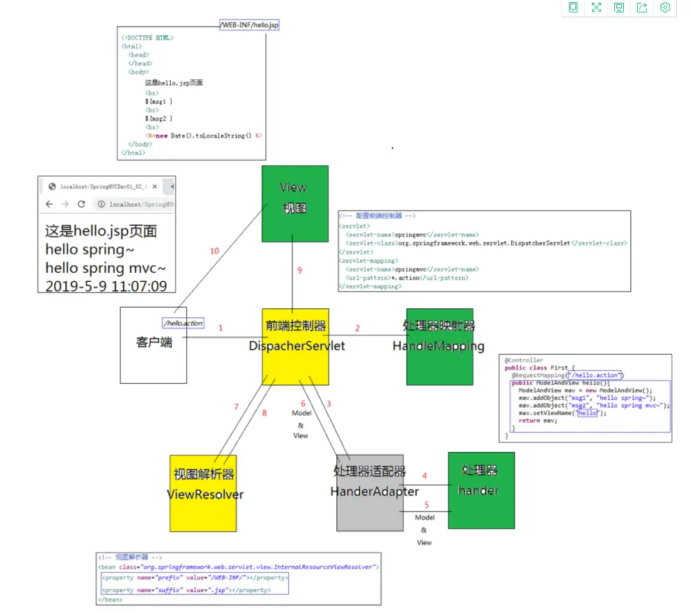 本质上就是将handler处理器中返回的model数据嵌入到视图解析器解析后得到jsp页面中,向客户端做出响应