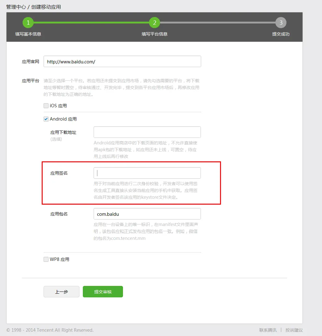 在微信开放平台申请相关应用接口的时候,要求一个应用签名的东西!