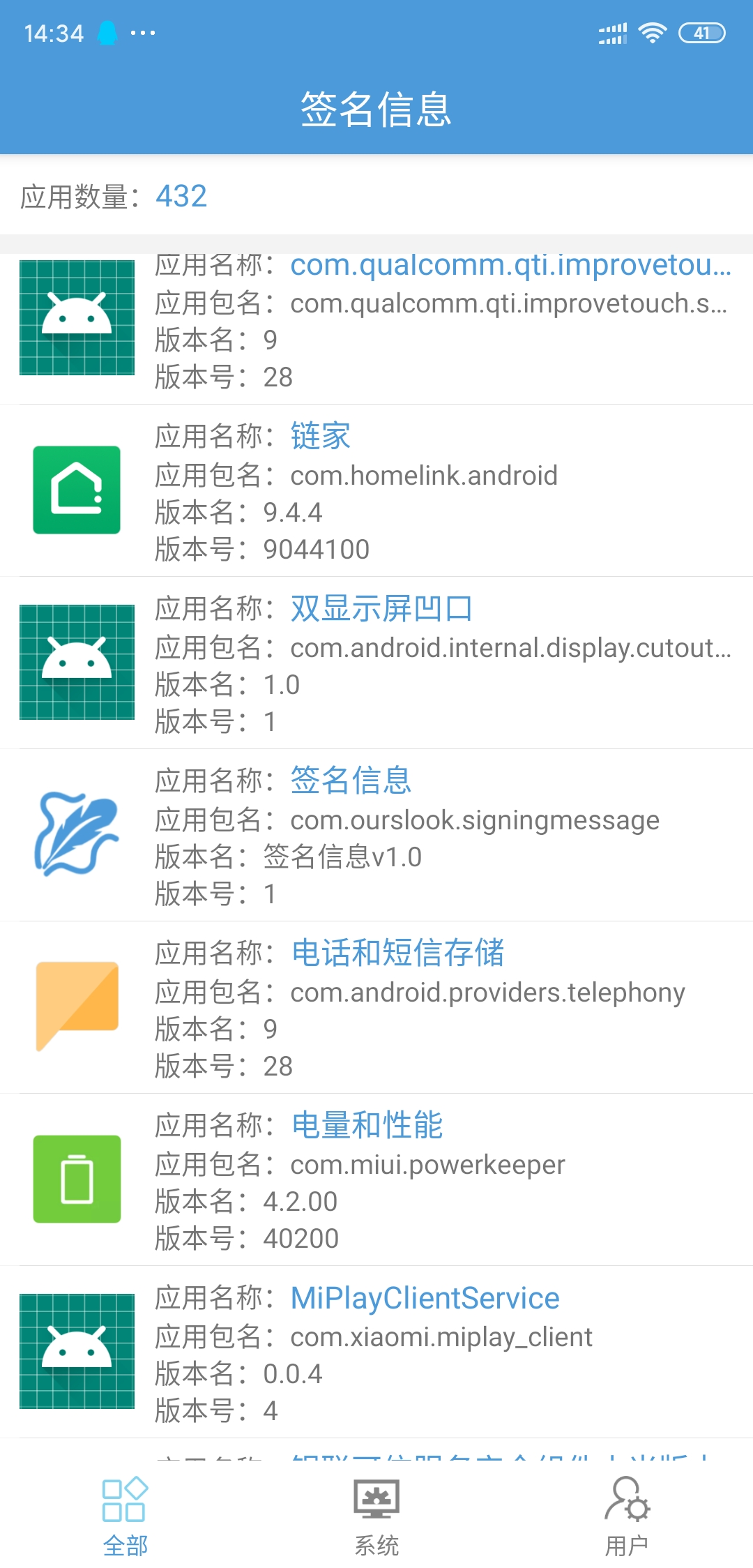 2、找到需要获取的那个APP进去查看复制(需要获取应用签名的APP要先安装到手机)