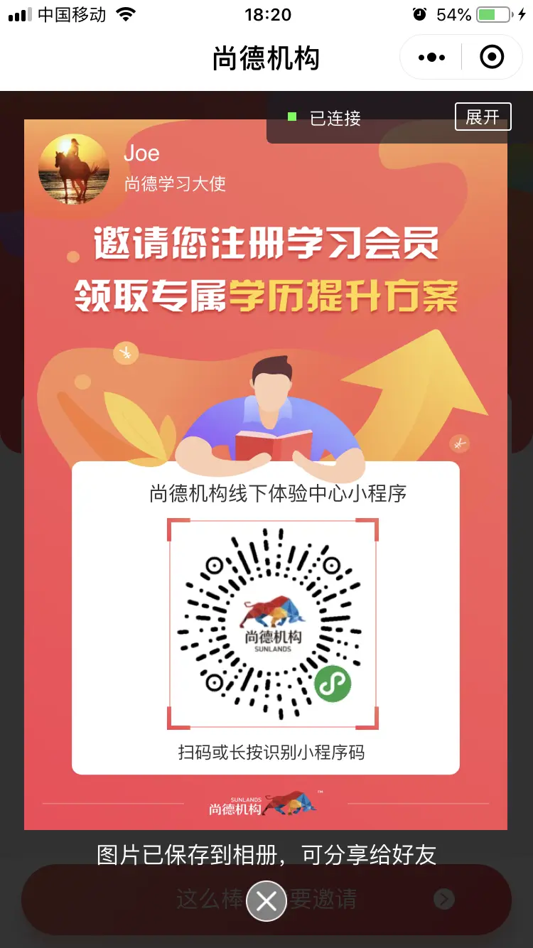小程序码因为会携带分享着信息,需要通过调用后台接口来动态生成,所以是异步的。可以在生成期间loading给用户返回进度。得到小程序码的url地址后,就可以根据前面的绘制方法,找到小程序码的位置绘制即可。 -