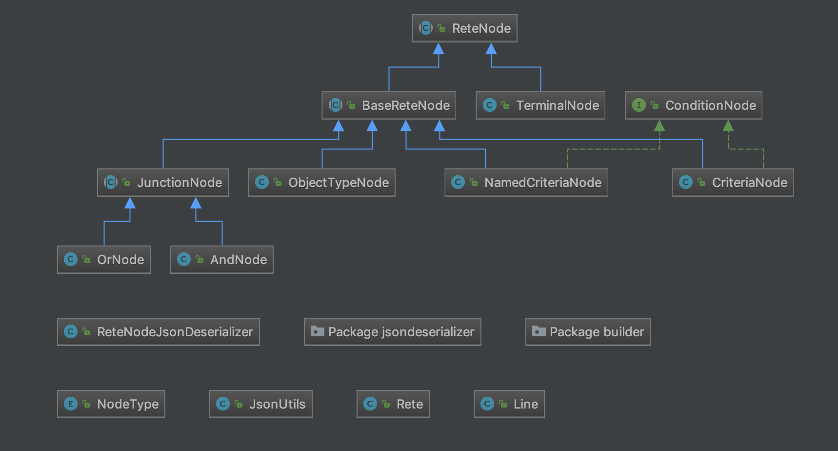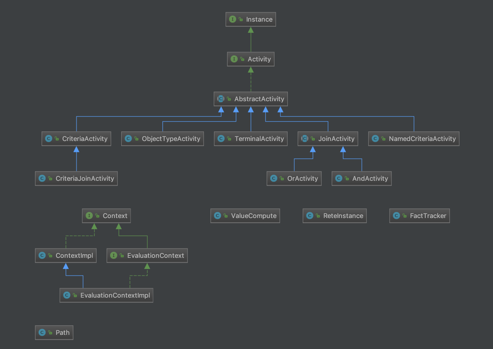 rete是通过DAG的形式保存在规则管理系统中,当规则引擎请求到一个规则的时候拿到的是一张Node图,Node图只表示了规则的定义但不能执行,然后其中的每个Node会调用toActivity方法进而生成一张Activity图,Activity用于执行