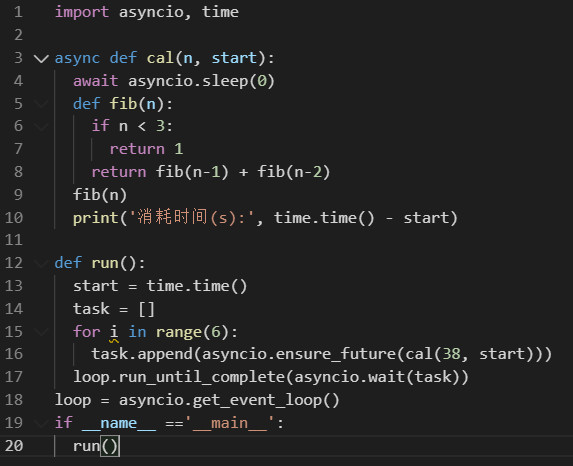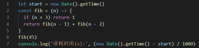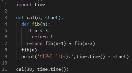 用一个简单的耗时功能来进行测试:递归实现斐波那契数列第n项的计算。