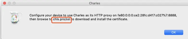 Help-> SSL Proxying -> Install Charles Root Certificate on a Mobile Device or Remote Browser 弹出如下弹窗,点击OK