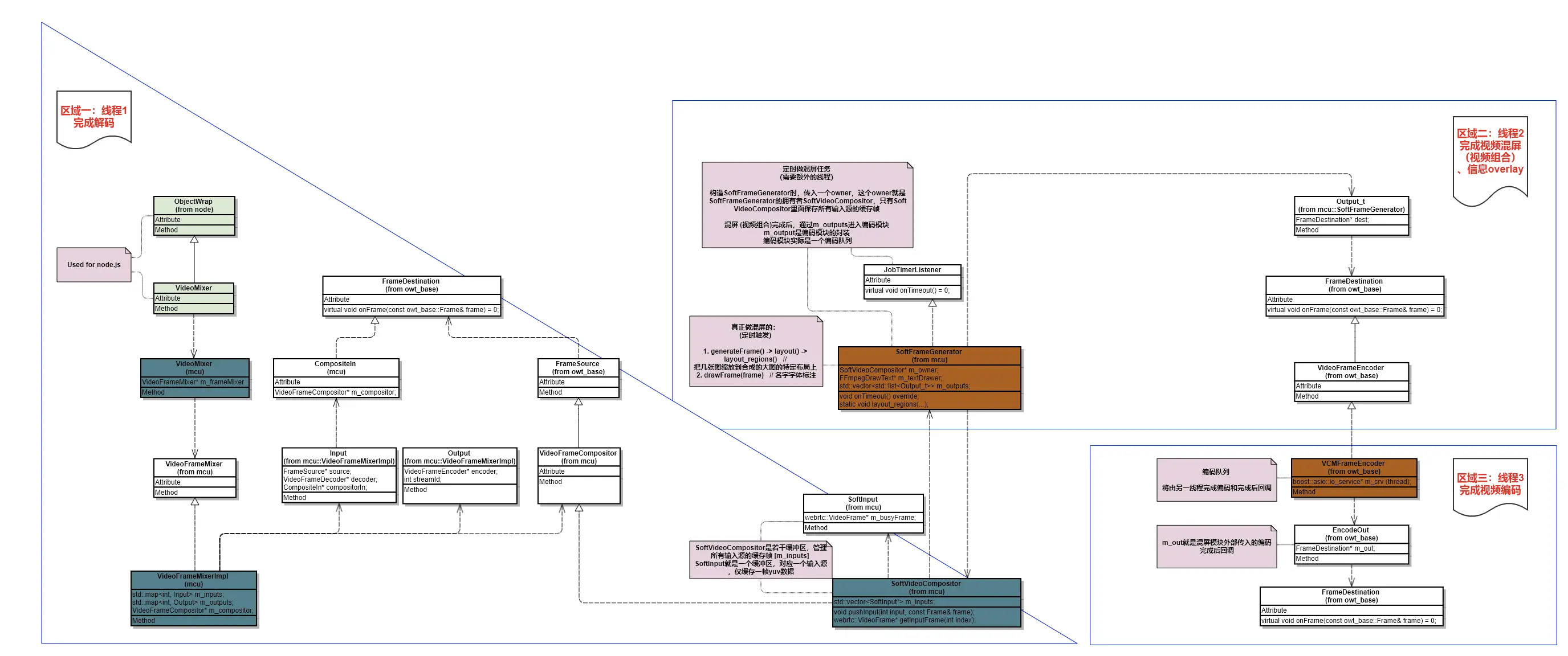 下图是owt-server混屏模块的类图,接下来会基于这个图来展开Pipeline和线程模型。