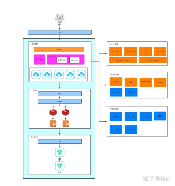 途中反映我们 ecs 应用集群的一个简要架构和监控体系。根据途中的情况,来讲讲我对高可用的一些处理~~😁