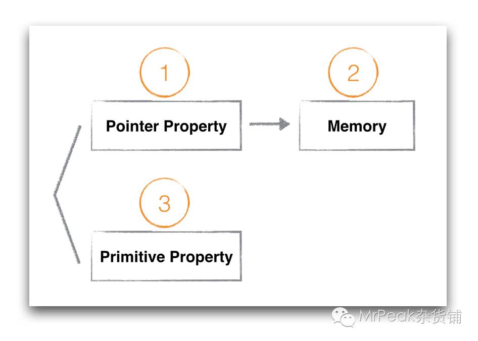 我们可以简单的将property分为值类型和对象类型,值类型是指primitive type,包括int, long, bool等非对象类型,另一种是对象类型,声明为指针,可以指向某个符合类型定义的内存区域。