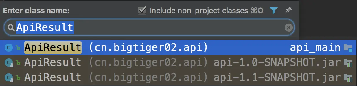 怀着疑惑的心情,我们搜索了一下ApiResult.class,竟然有两个api.jar包!!!其中一个是老版本的api.jar!!!