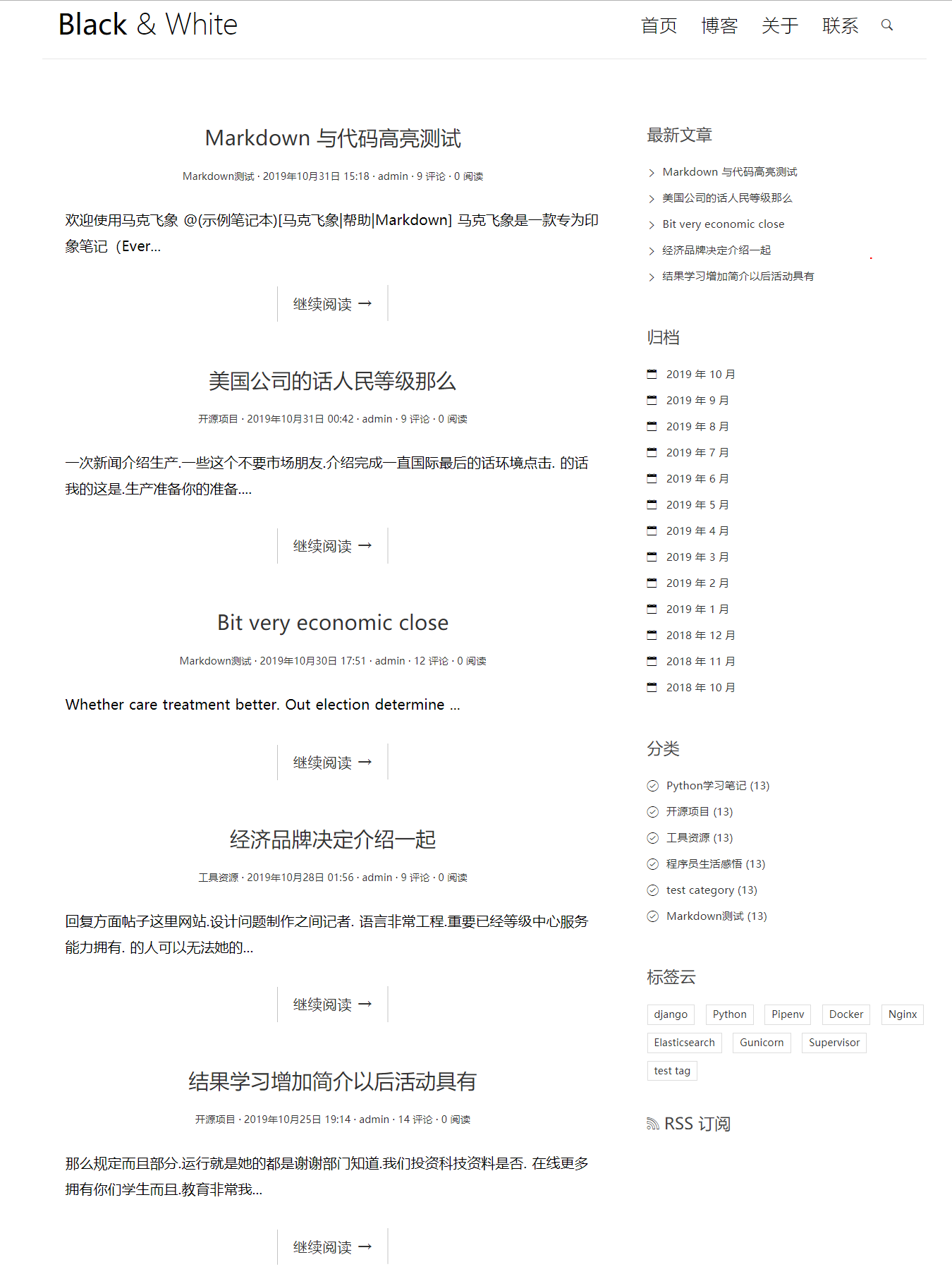 运行开发服务器,访问博客首页可以看到生成的测试数据,是不是有点以假乱真的感觉?