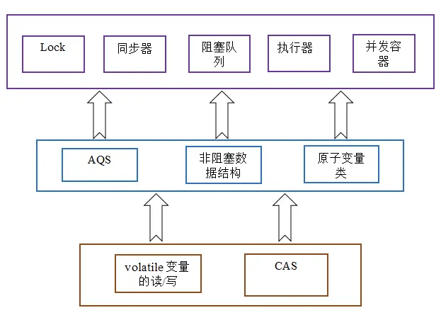 - AbstractQueuedSynchronizer: 队列同步器。它是构建锁或者其他同步组件的基础框架, 它是JUC(java.util.concurrent)并发包中的核心基础组件