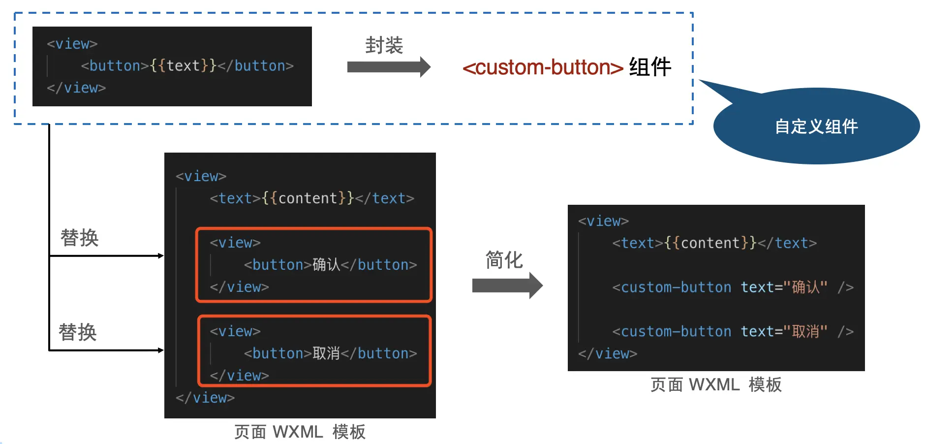 小程序组件树中的组件有两种:内置组件和自定义组件,内置组件是由官方提供的如 video、map 这样的组件,而自定义组件是一种支持由用户利用现有组件自行组装的组件,能否利用它来做些什么?
