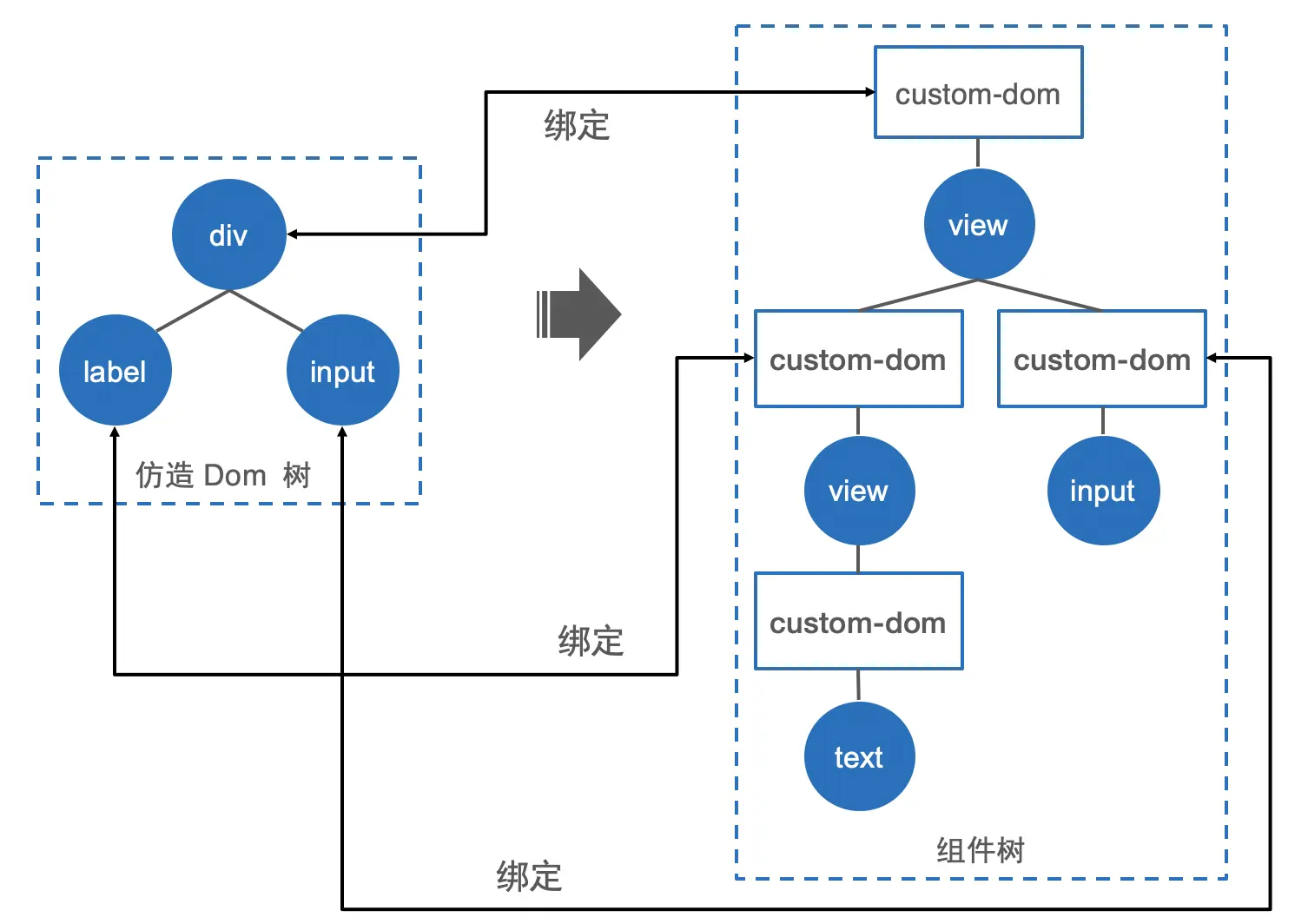 使用做法相当于抛弃了浏览器中建 Dom 树的过程,而是直接交由小程序来对模板进行编译创建出小程序的模板树,进而渲染到小程序页面中。